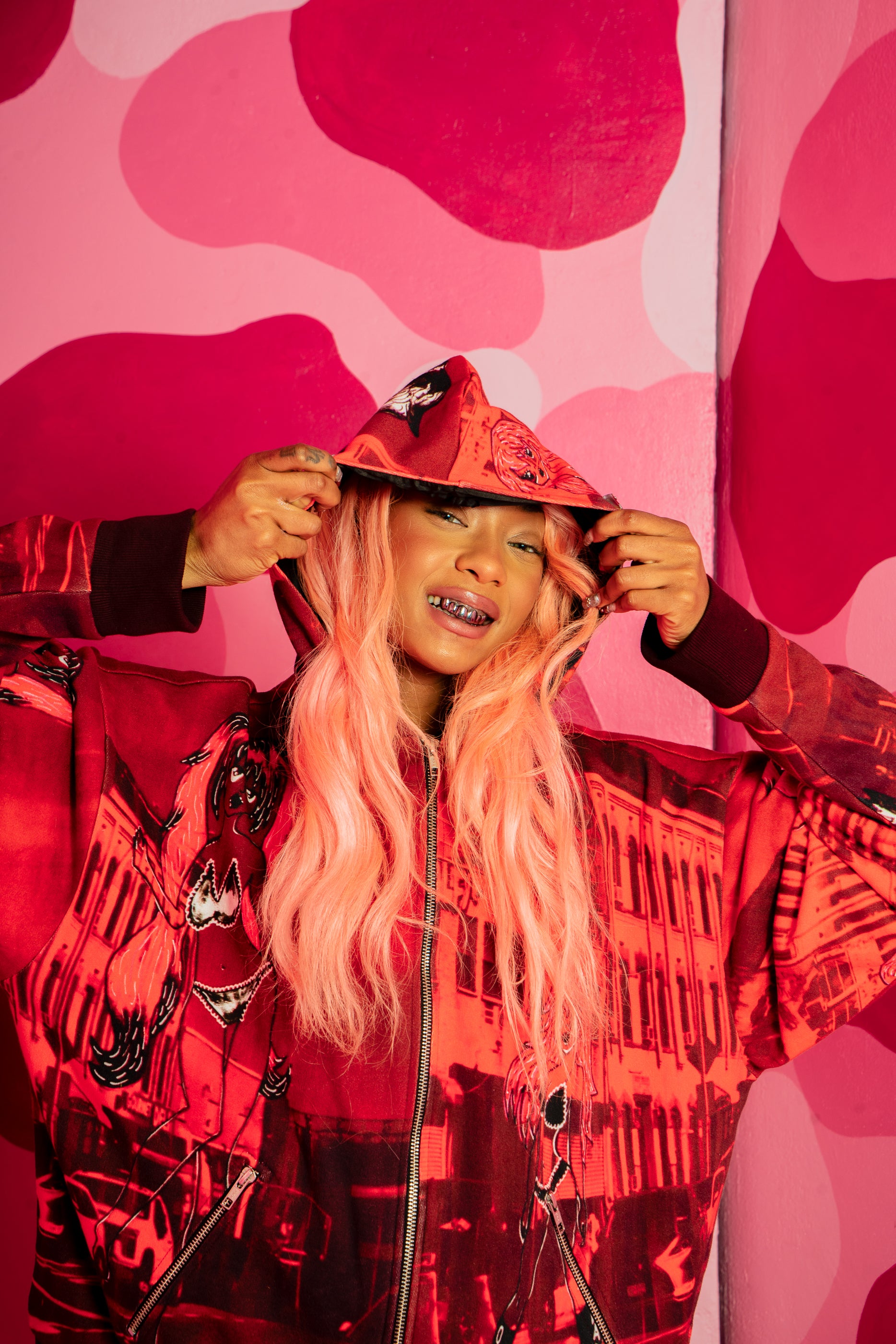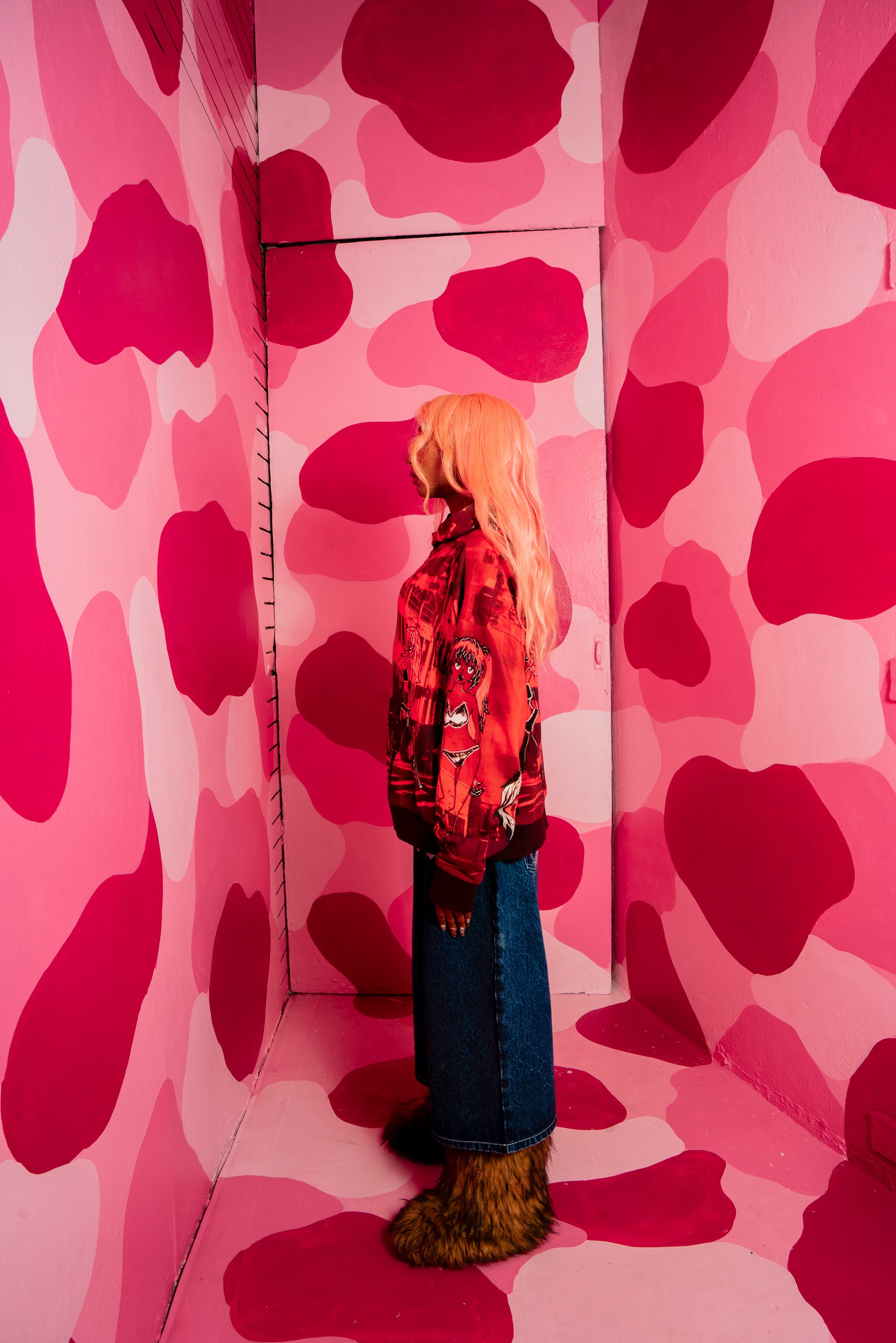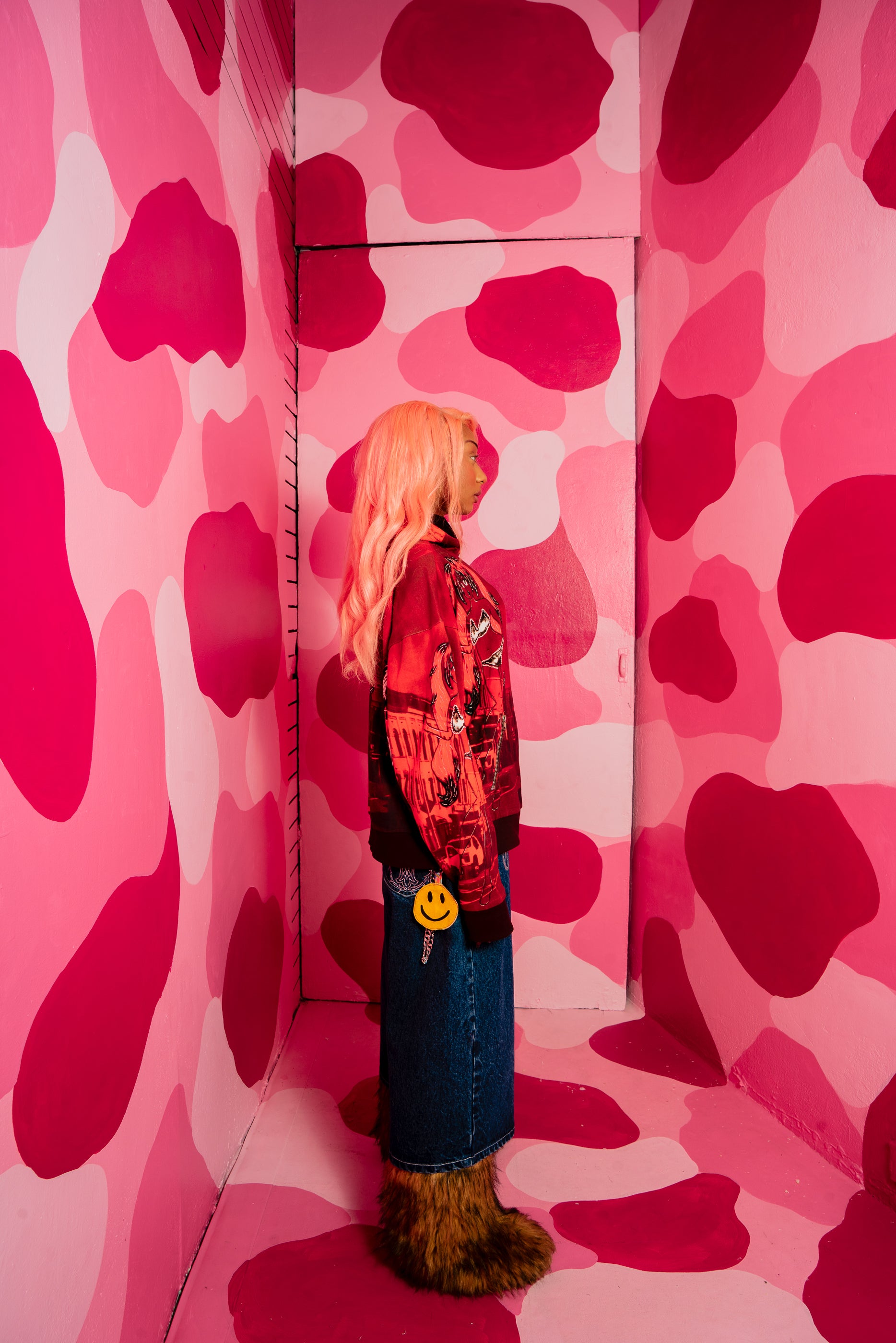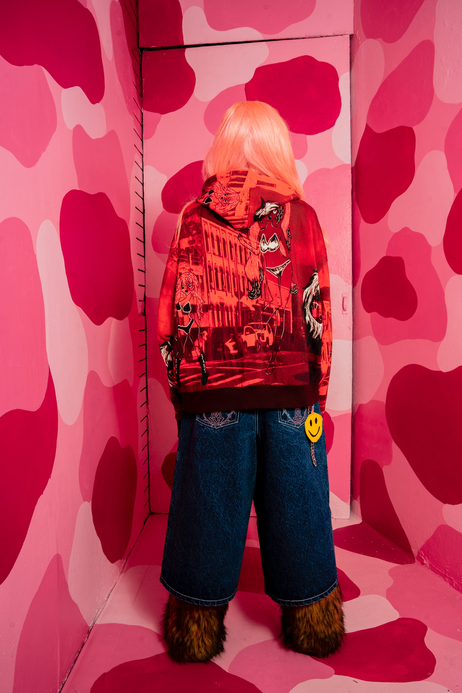 This cotton zip-up features an allover print sourced directly from an original Ooh Baby painting, transformed into a limited run wearable piece. Fully lined with smooth satin for a soft, elevated finish.